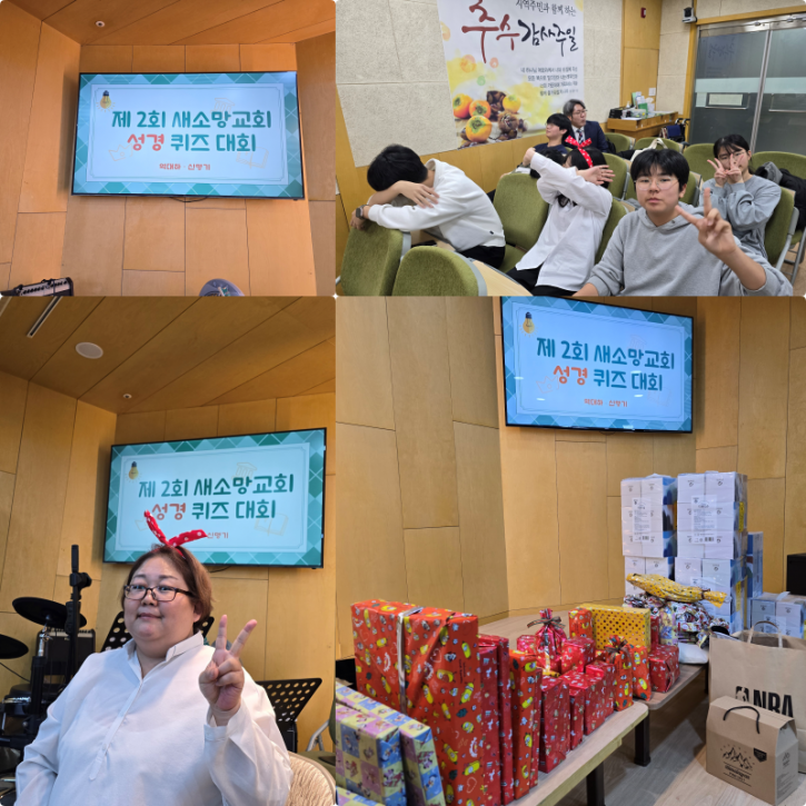 2025 제 2회 새소망교회 성경 퀴즈 대회 페이지 정보 작성자 새소망교회 작성일26-01-09 18:14 조회453회 댓글0건 관련링크 목록 본문 새소망교회 제 2회 새소망교회 성경 퀴즈 대회 2025.11.16 댓글목록 등록된 댓글이 없습니다. 목록